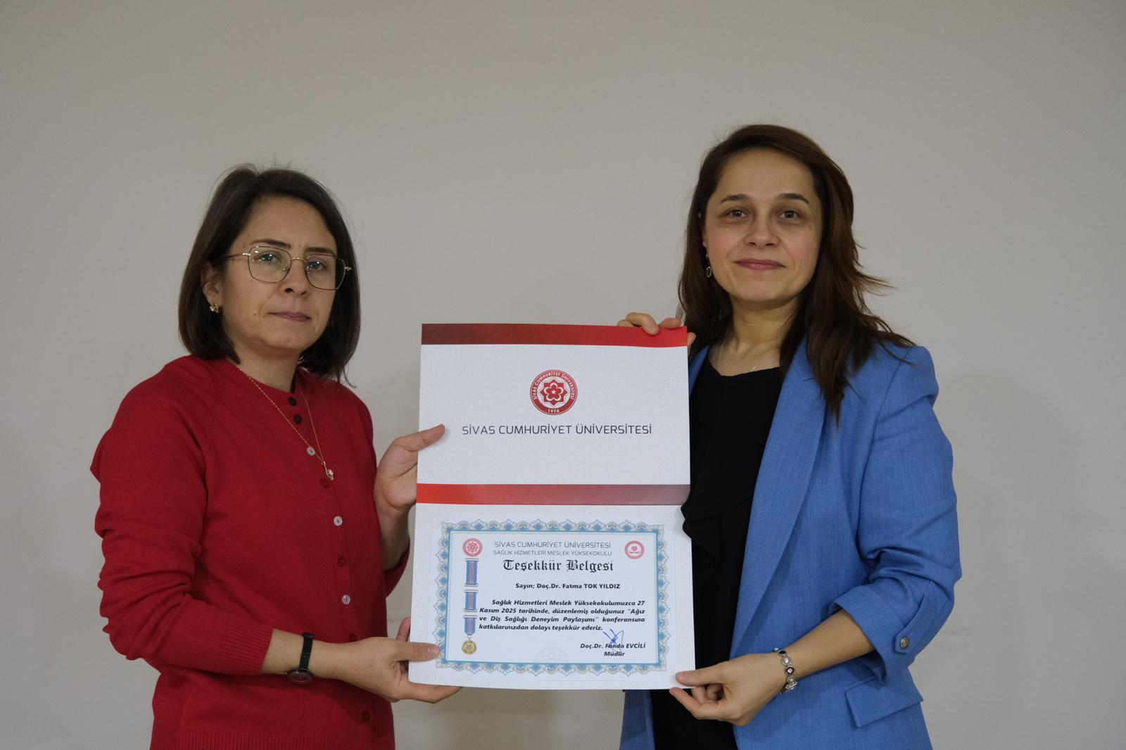 Etkinlik sonunda Yüksekokulumuz Müdürü Doç. Dr. Funda Evcili tarafından düzenleme kuruluna ve konuşmacılara teşekkür belgeleri takdim edildi.