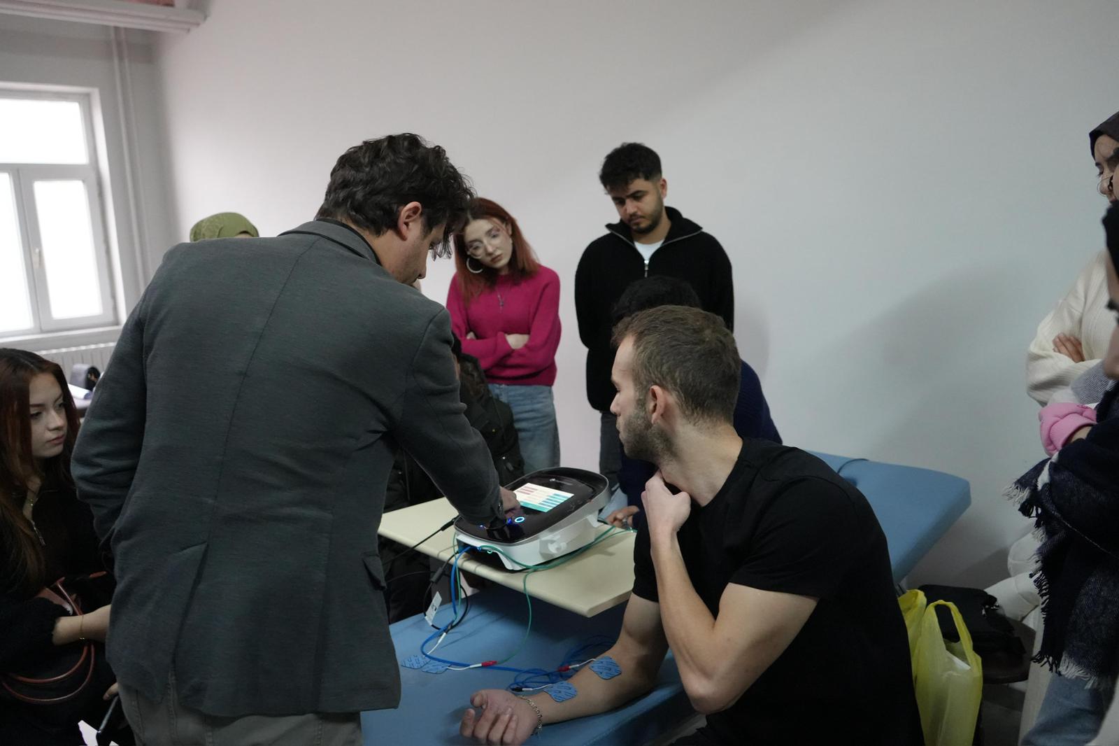 Uygulamalı eğitim kapsamında öğrencilerimiz; robotik lazer, manyetik stimülasyon, elektroterapi, DVT ve pnömatik kompresyon (lenfödem) cihazlarını yakından tanıma ve klinik kullanım esaslarını öğrenme fırsatı buldu. ELSA Ortopedi’den Erdem Bilir ve Fzt. Mesut Önder’in katkılarıyla gerçekleştirilen etkinlik, öğrencilerimize önemli bir klinik deneyim sundu.