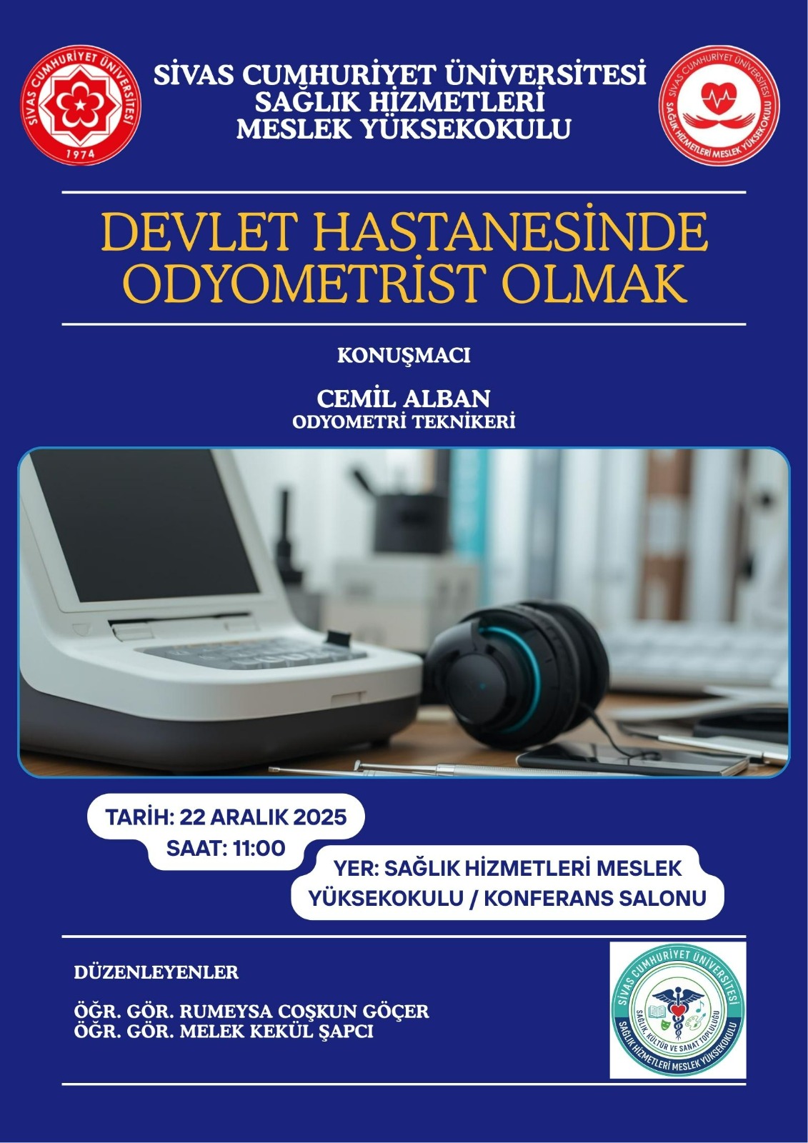 Sivas Cumhuriyet Üniversitesi Sağlık Hizmetleri MYO tarafından, Öğr. Gör. Rumeysa Coşkun Göçer ve Öğr. Gör. Melek Kekül Sapçı koordinasyonunda devlet hastanelerinde odyometrist mesleğine yönelik bilgilendirici bir etkinlik düzenlendi.