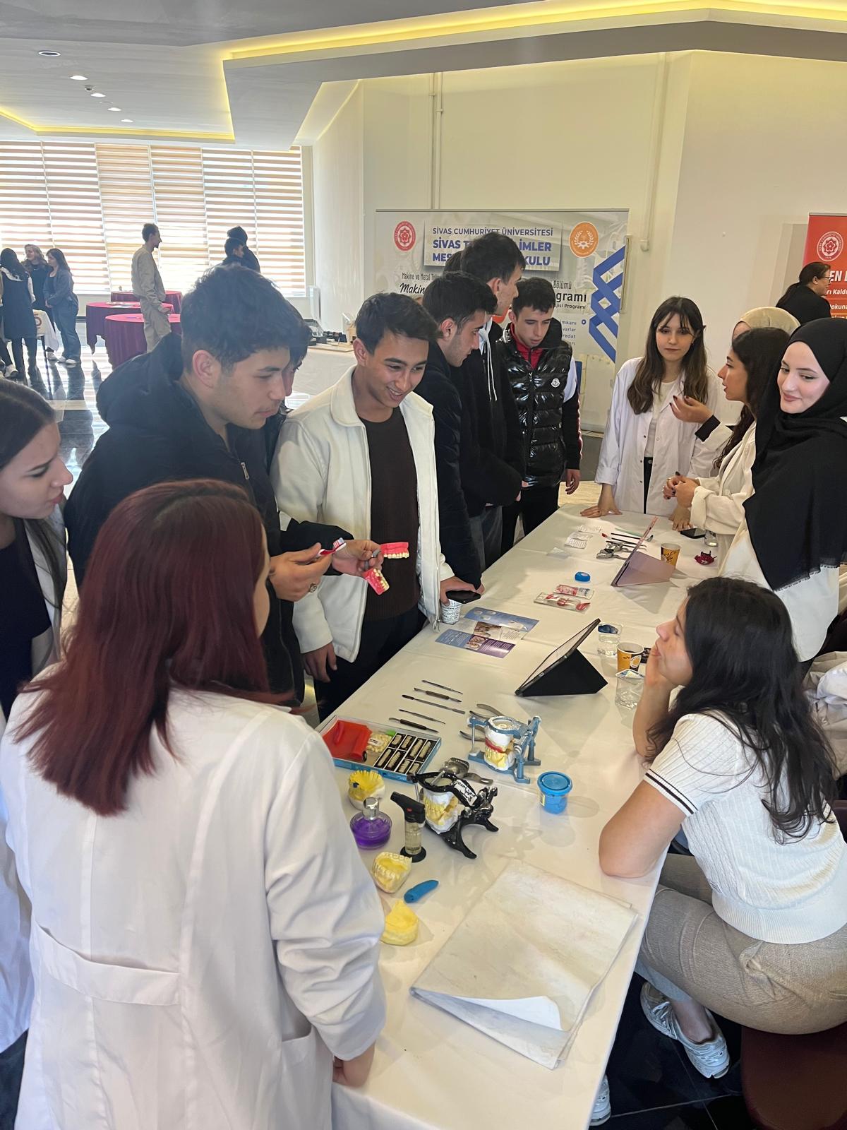 Sivas Cumhuriyet Üniversitesi Kariyer Fuarı (CÜKAF'26) kapsamında; Anestezi, İlk ve Acil Yardım, Tıbbi Görüntüleme Teknikleri, Ağız ve Diş Sağlığı, Diş Protez Teknolojisi programlarımızın tanıtımını gerçekleştirdik.