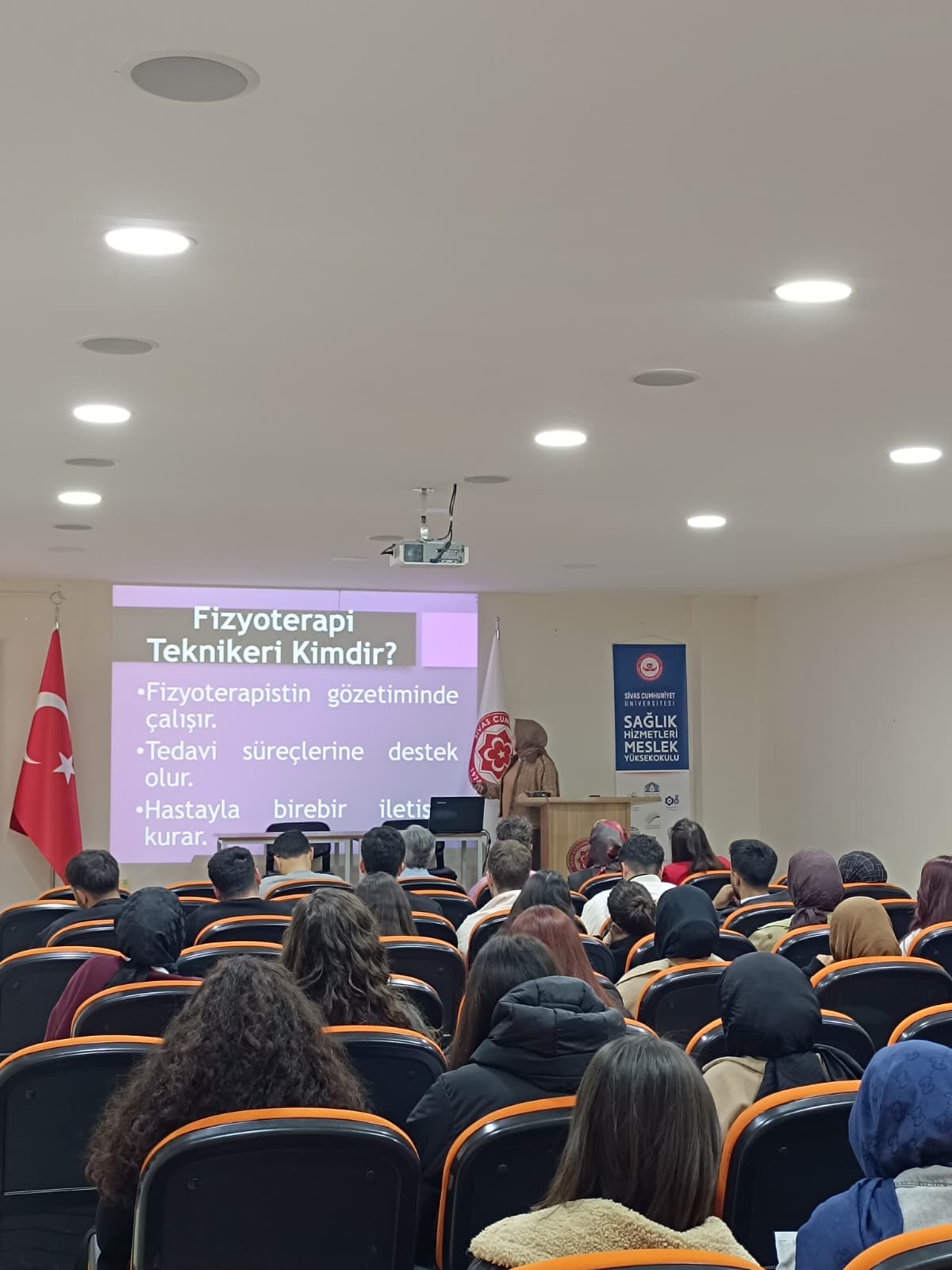 Fizyoterapi programı tarafından düzenlenen “Mezun Buluşması” etkinliği kapsamında, 2011–2013 yılları arasında yüksekokuldan mezun olan ve halen Sivas Numune Hastanesi’nde görev yapan Fizyoterapi Teknikeri Elif Sena Erem öğrencilerle bir araya geldi.